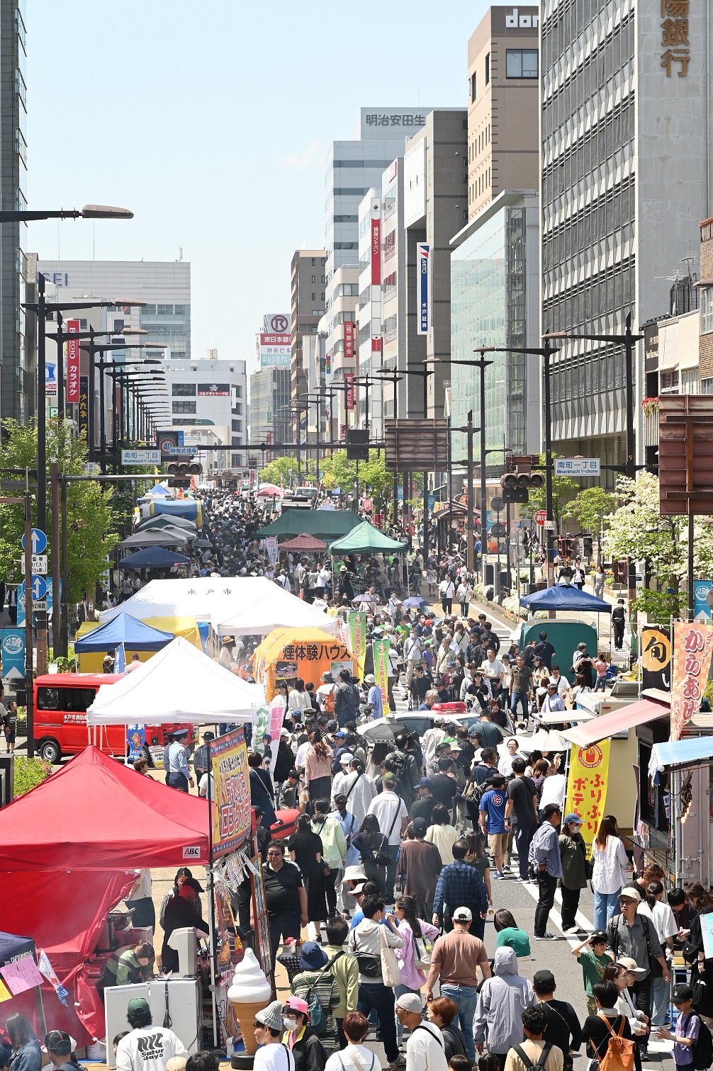 水戸駅から大工町周辺までのエリアを中心に、通りや広場が歩行者天国となり、グルメやマーケット、ワークショップ、ステージパフォーマンスなど、さまざまな催しが街中に広がります。